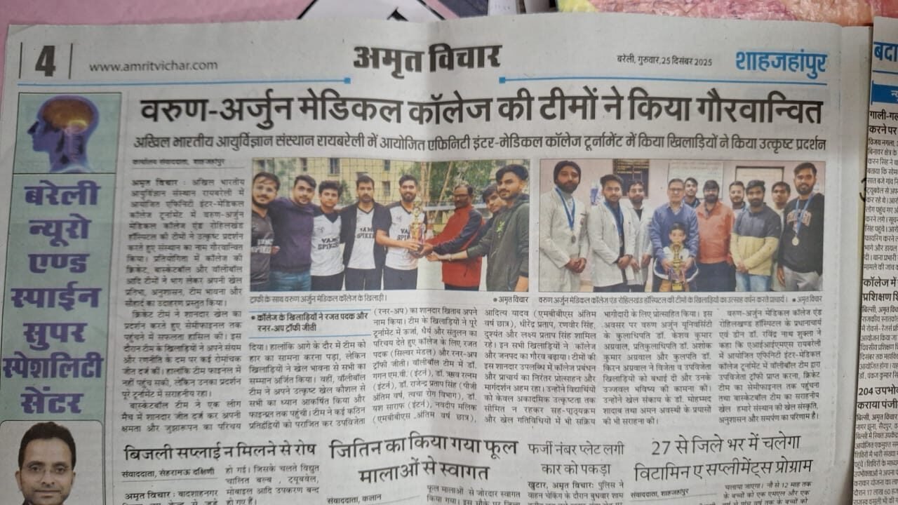 Varun Arjun Medical College & Rohilkhand Hospital continues to promote a balanced environment that nurtures academic excellence along with leadership, teamwork, and physical fitness, encouraging students to actively participate and shine in extracurricular activities at regional and national levels.