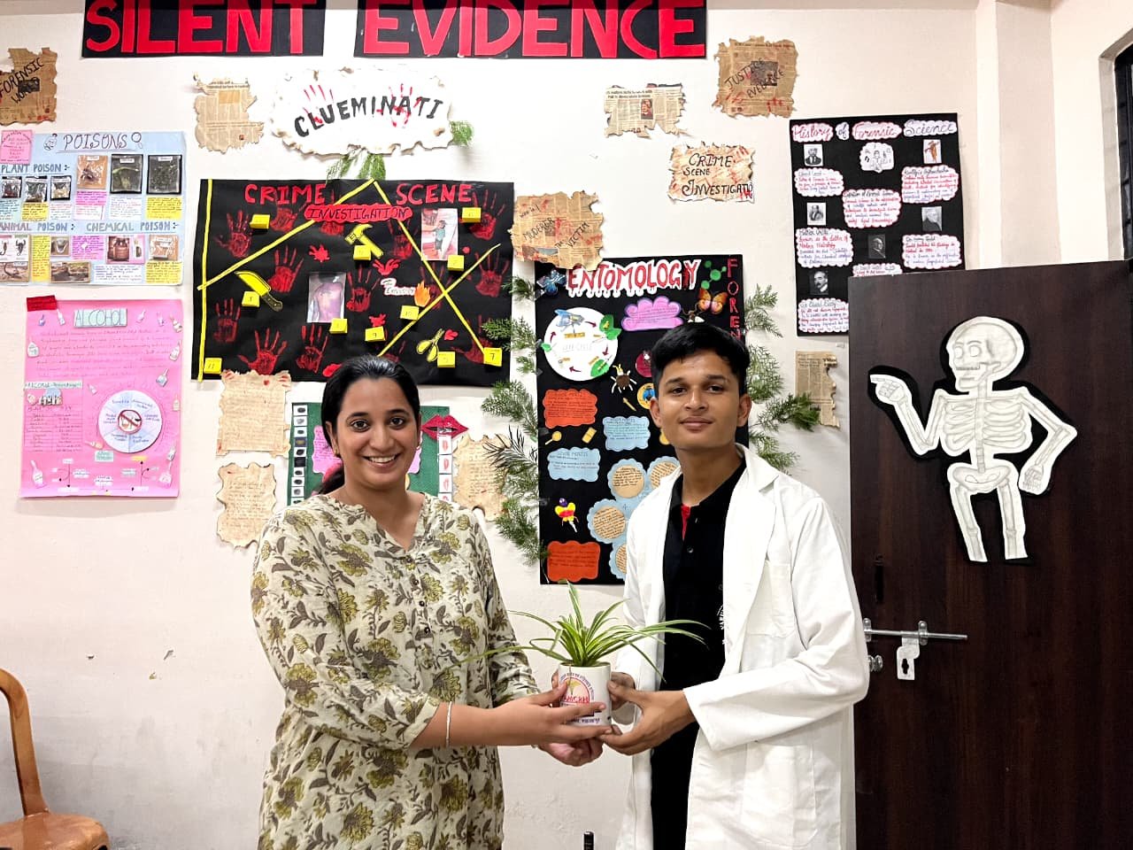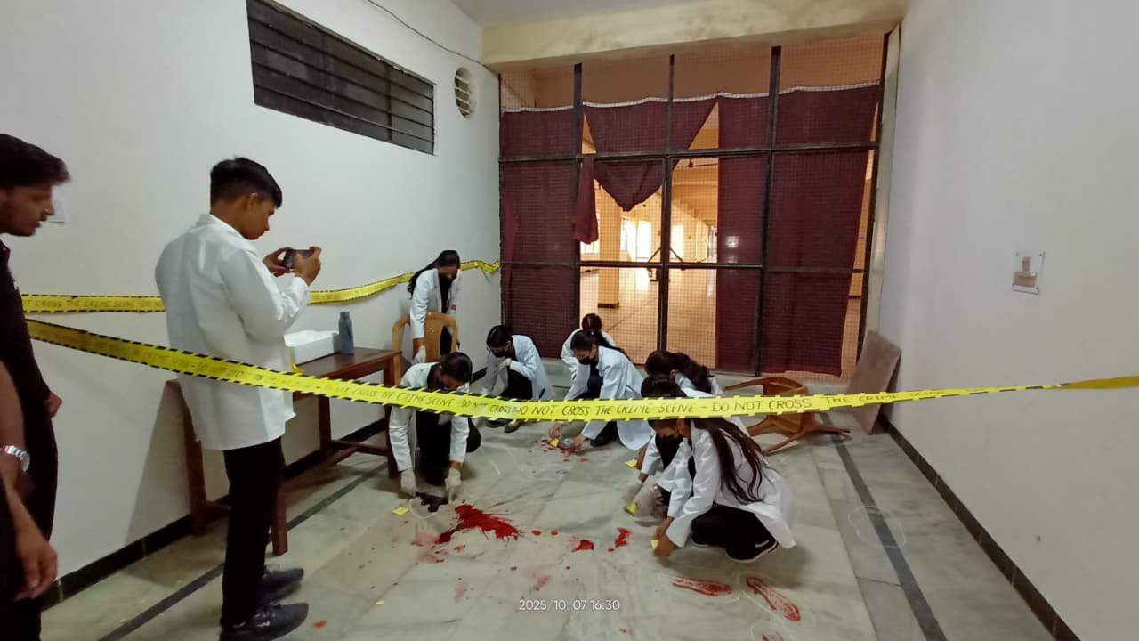 During the program, Dr. Ashok Sir, Dr. Kiran Ma’am, Dr. L.R. Verma Sir, Dr. Anil Sir, and Dr. Lalit Sir shared their valuable thoughts. They emphasized the importance of Crime Scene Investigation, Fingerprinting, and the Toxicity of Poisons for both students and faculty members.