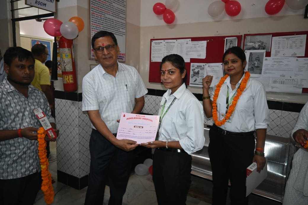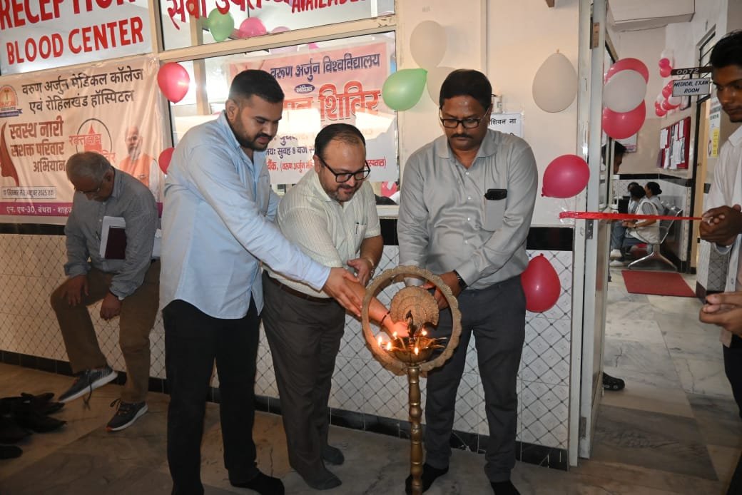 Varun Arjun University and Varun Arjun Medical College and Rohilkhand Hospital, Banthra-Shahjahanpur on 17th September 2025, under the guidance and inspiration of Government of India and Hon’ble Prime Minister Shri Narendra Modi Ji inaugurated “Swasth Nari, Sashakt Parivar Abhiyan – 2025” in a grand manner. On the first day of this 15-day special campaign, a blood donation camp was organized at Varun Arjun Medical College and Blood Bank of Rohilkhand Hospital, in which Doctors, Nurses, students and staff were participated.