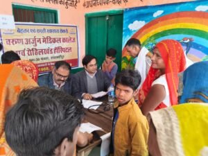 Varun Arjun Medical College and Rohilkhand Hospital under Varun Arjun University, Banthra, Shahjahanpur, organized a ‘POSHAN Awareness Camp’ on September 30, 2025, as part of Thirteenth day ‘Swasth Naari, Sashakt Parivaar Abhiyan’. The event, spearheaded by the Community Medicine Department under the guidance of Dr. Dharmendra Kumar Gupta, aimed to promote healthy dietary practices and awareness in the community, aligning with the national ‘POSHAN Abhiyan’ (National Nutrition Mission).