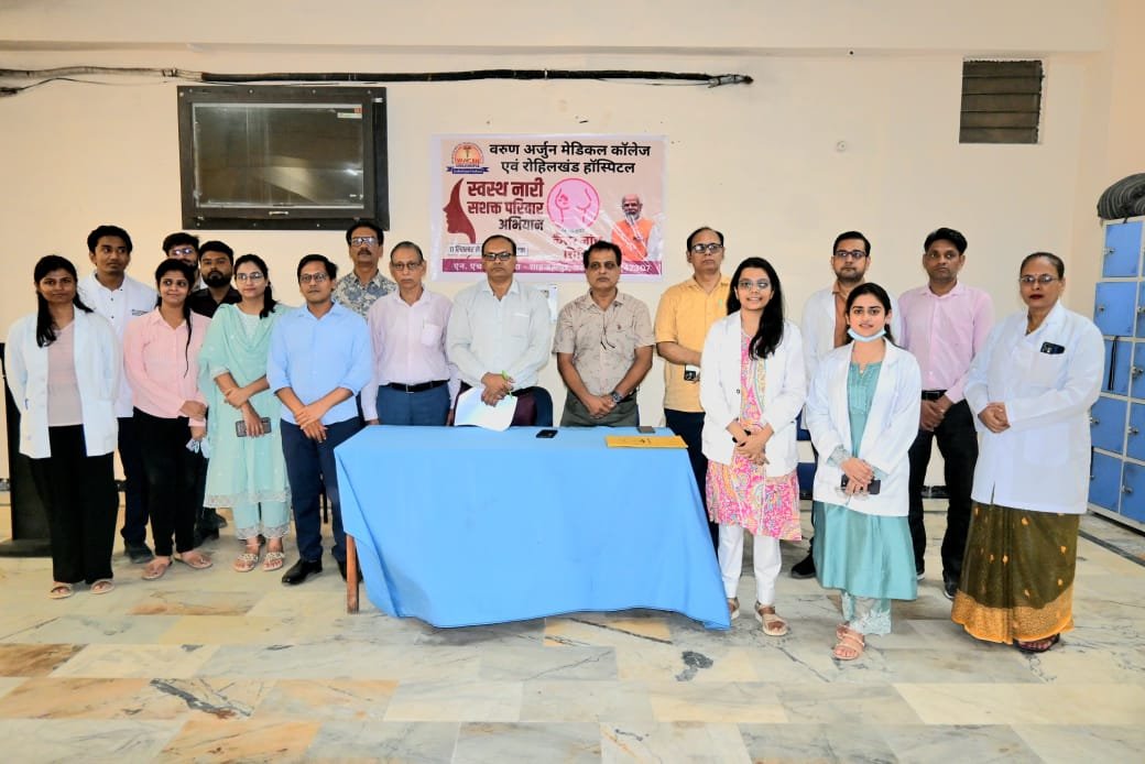 On September 24, 2025, Varun Arjun Medical College & Rohilkhand Hospital successfully held a Cancer Screening Camp as part of the “Swasth Naari, Sashakt Parivar Abhiyan– 2025.” The event, jointly organized by the General Surgery and Dental Departments, focused on the early detection and prevention of breast, oral, and cervical cancers.