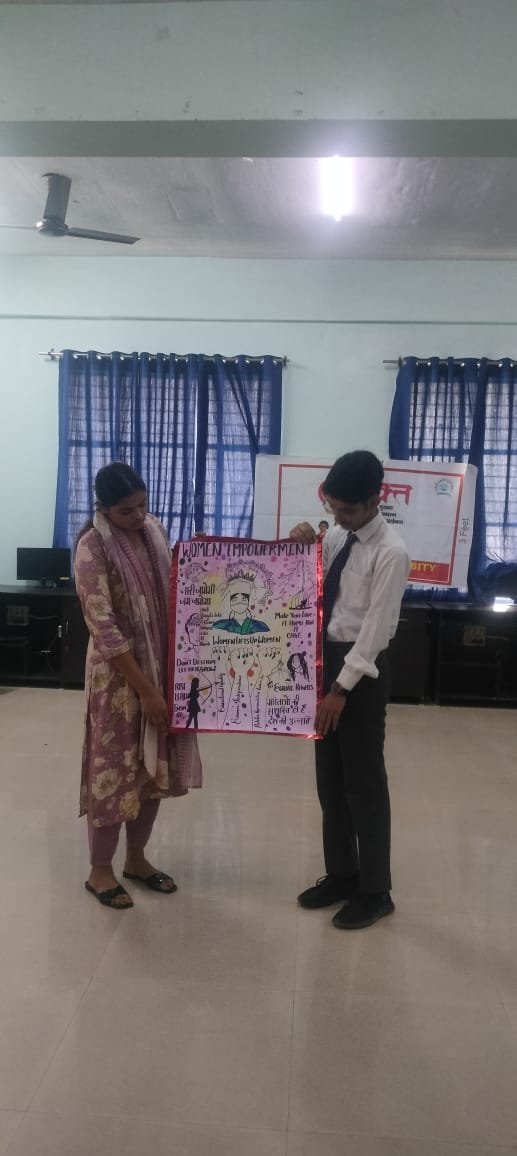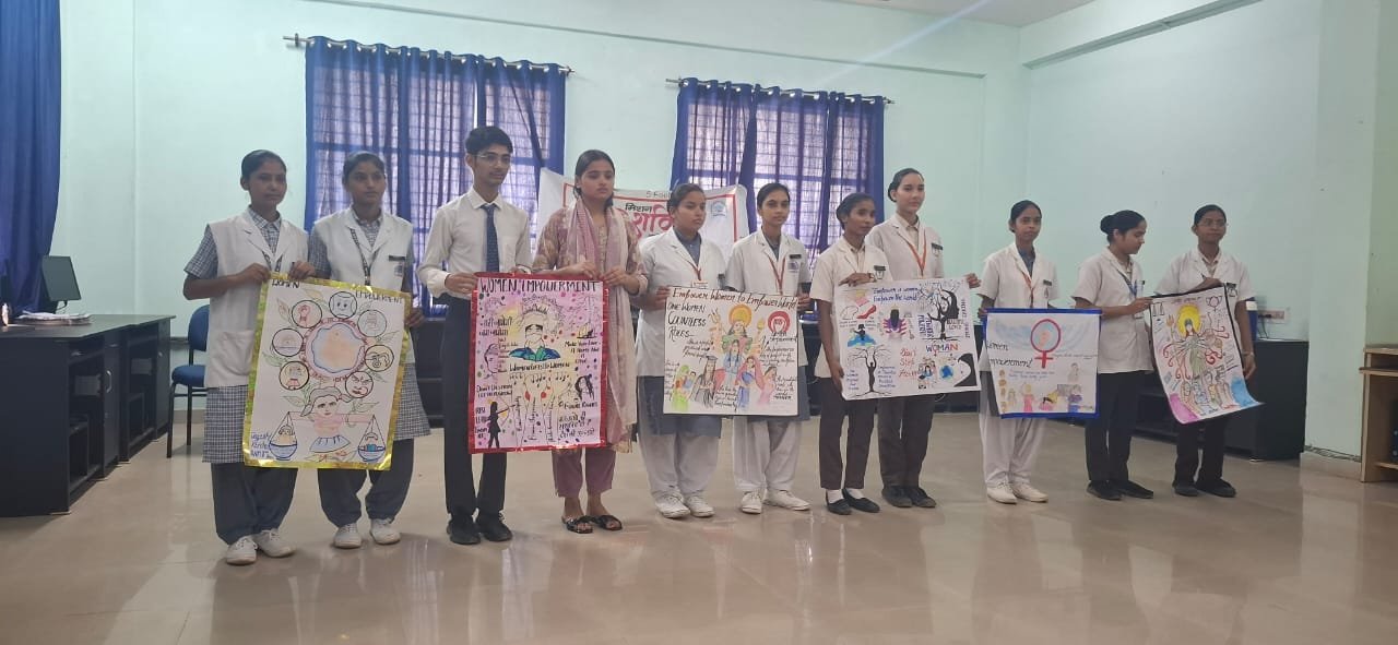 During the event, Nodal Officer Dr. Shivani Gupta emphasized the importance of Mission Shakti as a movement symbolizing social awakening and women’s empowerment. Vice Principal Mr. Deepak Pachauri appreciated the creativity and dedication of the students, while Activity Incharge Ms. Renuka shared that poster, song, and stage-play competitions were organized. B.Sc. Nursing students Shubhi and Rudra Pratap won first prize in the poster competition on the theme “Women’s Safety and Self-Reliance.” Digital Media Cell Incharge Mr. Sachin Chauhan highlighted the importance of digital platforms in spreading awareness to a wider audience.