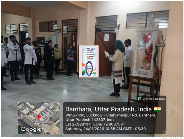 Varun Arjun University observed National Voters’ Day 2026 with a pledge-taking ceremony on 24th January aimed at promoting electoral awareness and responsible citizenship. The programme was conducted across the constituent colleges of the university at Shahjahanpur, Uttar Pradesh, with active and enthusiastic participation from students and faculty members.