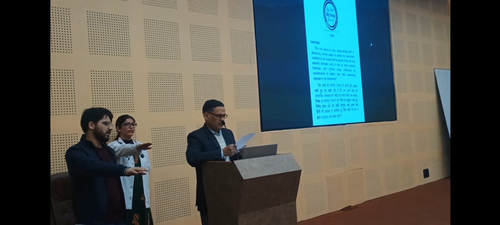 At Varun Arjun Medical College & Rohilkhand Hospital (VAMC & RH), the National Voters’ Day Pledge was administered by Dr. R. N. Shukla, Dean & Principal. He highlighted voting as a fundamental democratic right and an essential civic duty, emphasizing the responsibility of educated youth and healthcare professionals to uphold democratic values through informed and ethical participation in elections.