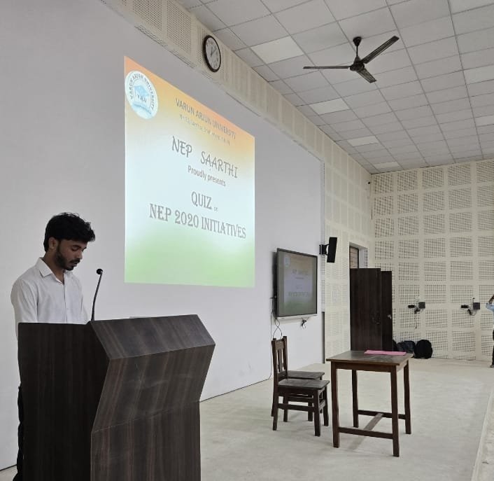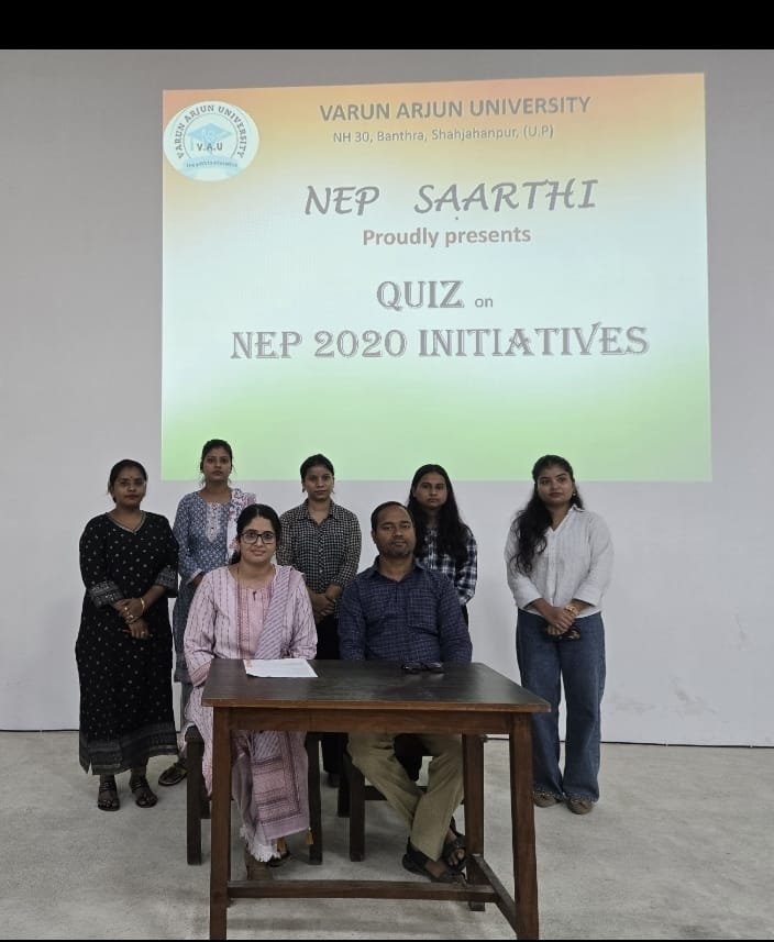 The NEP Cell of Varun Arjun University successfully organized a Quiz Program on NEP 2020 initiatives on 18th October 2025. This program aimed to enhance students’ understanding of the National Education Policy 2020, focusing on its core objectives of making education more flexible, multidisciplinary, and skill-oriented.