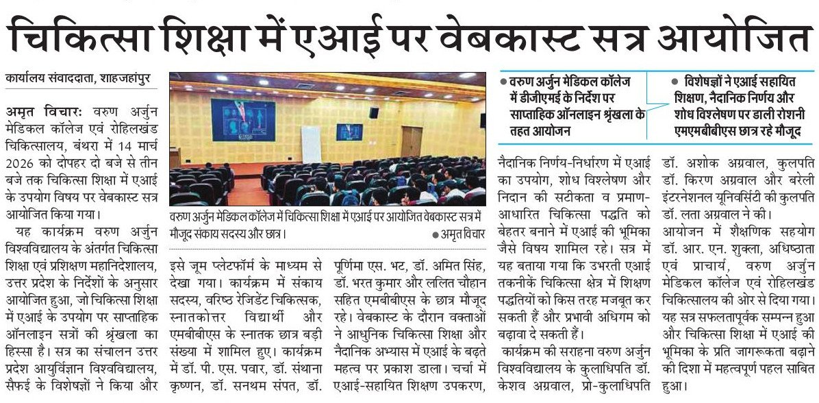 Webcast Session on the Use of AI (Artificial Intelligence) in Medical Education at Varun Arjun Medical College"