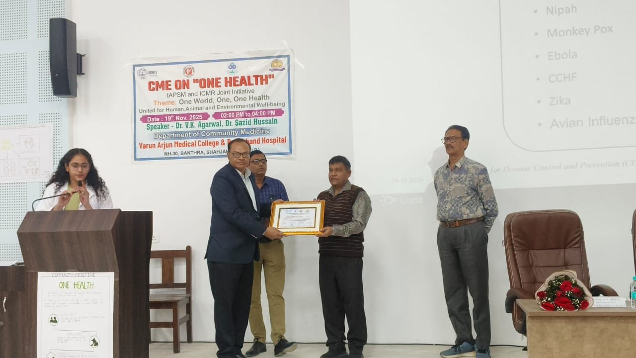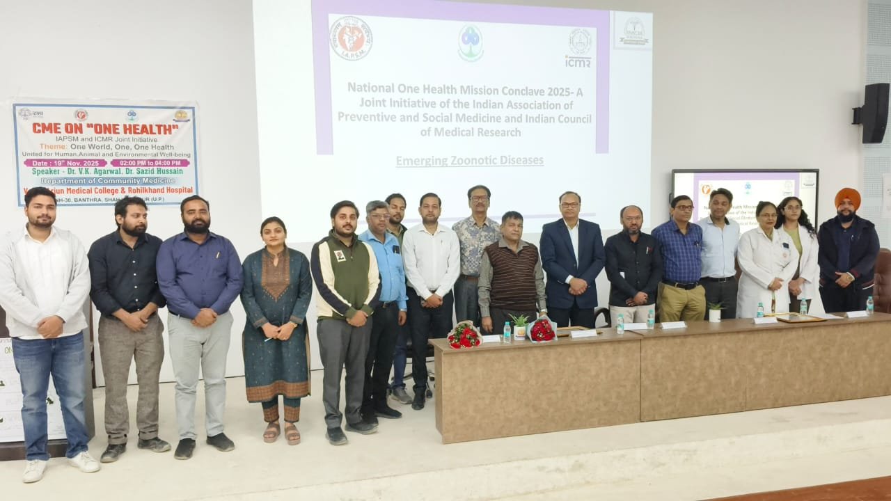 A Continuing Medical Education (CME) program focusing on the national theme “One Nation, One Health” was conducted today at Varun Arjun Medical College and Rohilkhand Hospital, Banthra. The event was organized by the Department of Community Medicine under the guidance of Professor & HOD Dr. Dharmendra Kumar Gupta.