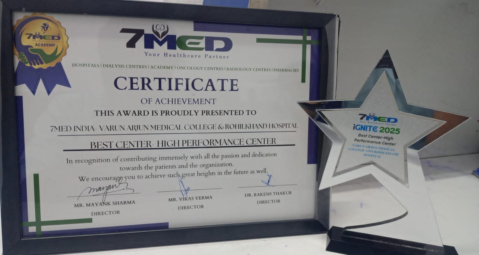 Varun Arjun Medical College & Rohilkhand Hospital received BEST CENTER HIGH PERFORMANCE CENTER award.