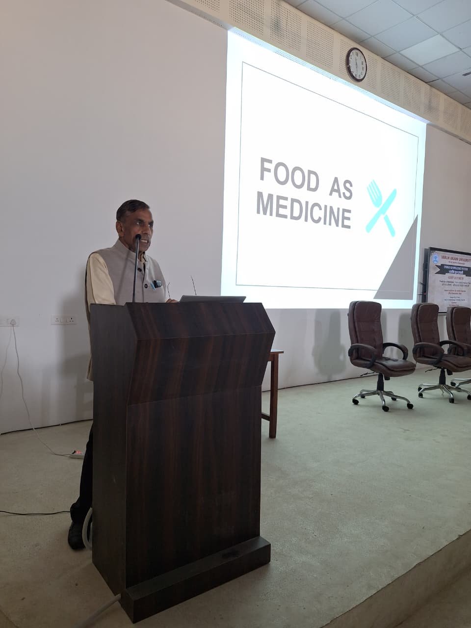 The Chief Guest and Pro-Chancellor, Dr. Ashok Agarwal, highlighted various dimensions of the Indian Knowledge System and emphasized the dietary principles suggested by Acharya Charaka, stressing timely meals, mindful eating, and balanced nutrition.